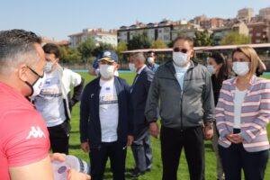 Antrenörlerden gerçekleştirdikleri çalışmalar hakkında bilgiler alan protokol üyeleri masa tenisi, okçuluk, voleybol, basketbol, bisiklet ve badminton etkinliklerine katılarak gençlerle birlikte spor yaptı.