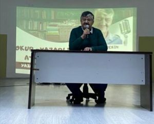 Okulun, “Okur – yazarlık Atölyesi yazar buluşması kapsamında “Kitaplara Göz değsin” projesi için öğrencilere yazarlık deneyimlerini aktardı.