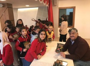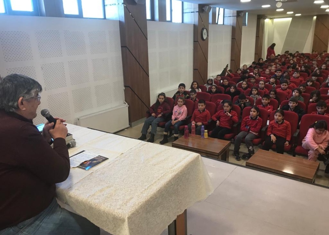 Daha sonra öğrencilerin sorularını cevaplandıran Aytekin “Macera Peşinde Gizemli Orman” isimli kitabını öğretmen ve öğrencilere imzaladı.