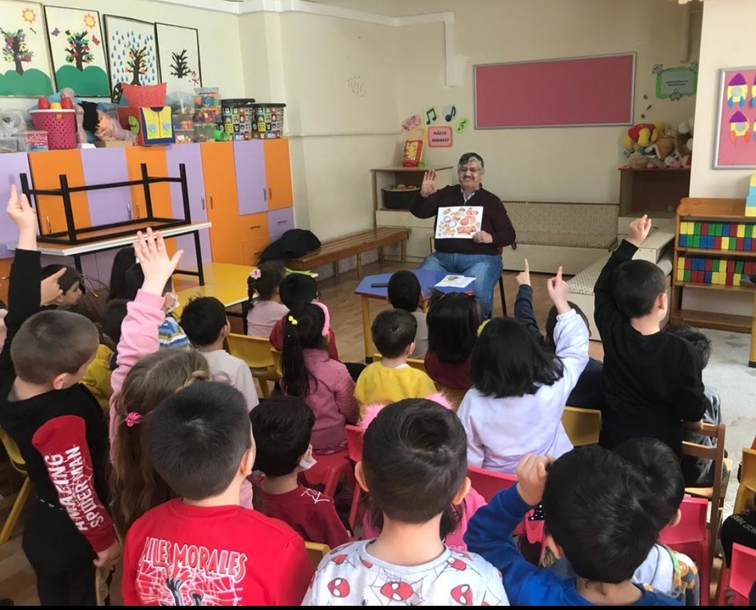Gazeteci yazar ressam Osman Aytekin Mustafa Çalışkan İlkokulunda okul öncesi çocuklarına masal anlattı.