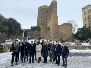 Genel Başkanımız Mehmet Ali Dim, Dış Medya Meclisi Başkanımız Elşad Eyvazlı ve Genel Sekreter Yardımcımız Aynur Tattersall ile 15 yabancı gazeteciden oluşan KGK heyeti, Azerbaycan’ın haklı tezlerinin anlatılması için ikinci kez Bakü’de temaslarına başladı.