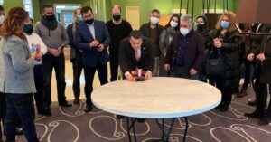 Aynı zamanda Bakü Parlamento Jurnalistleri Birliği Başkanı olan Elşad Eyvazlı ve Azerbaycanlı gazeteciler, doğum günü 25 Şubat olan genel başkanımız Dim’e Bakü’de sürpriz doğum günü pastası da kestiler.