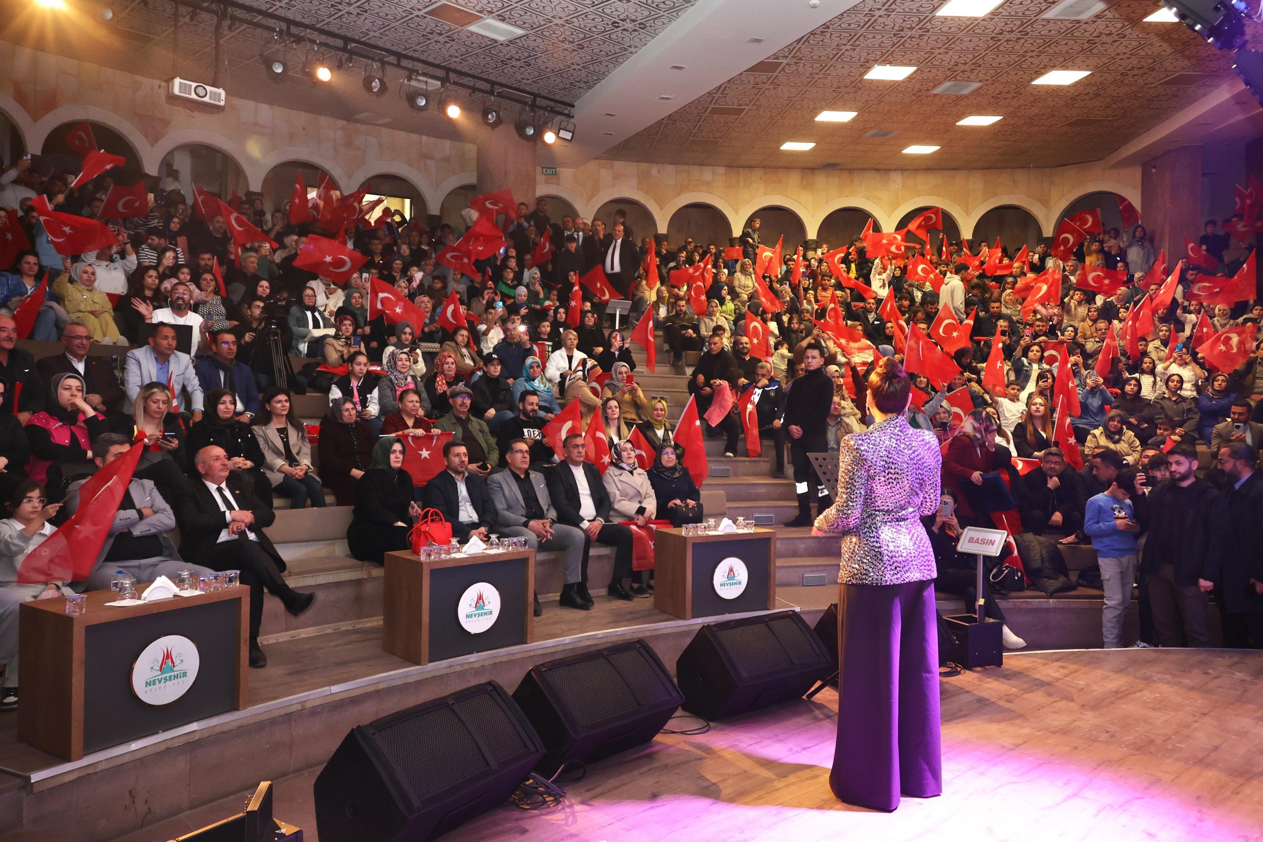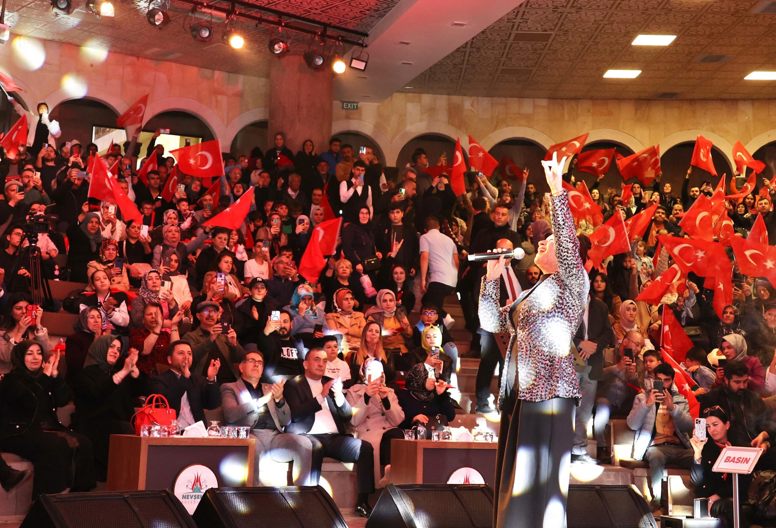 Nevşehir Belediyesi’nin düzenlediği konserde sahne alan ünlü sanatçı Azerin seslendirdiği şarkı, türkü ve marşlarla Nevşehirlilere unutulmayacak bir akşam yaşattı. Nevşehir’in yeni gerdanlığı Kahveci Dağı’nda planlanan ama meteorolojik veriler nedeniyle kapalı alana alınan ve Kapadokya Kültür ve Sanat Merkezi’nde düzenlenen konseri binlerce kişi izledi. Kapadokya Kültür ve Sanat Merkezi’nin almadığı binlerce Nevşehirli vatandaş ellerindeki Türk bayraklarını konser boyunca dalgalandırırken Sanatçı Azerin, Nevşehir’de bulunmaktan mutluluk duyduğunu söyledi.