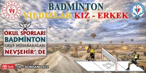 2021-2022 Yılı Okul Sporları Badminton Yıldızlar Kız – Erkek Grup Müsabakaları 28- 30 Nisan 2022 tarihleri arasında Ürgüp Spor Salonunda düzenlenecek.