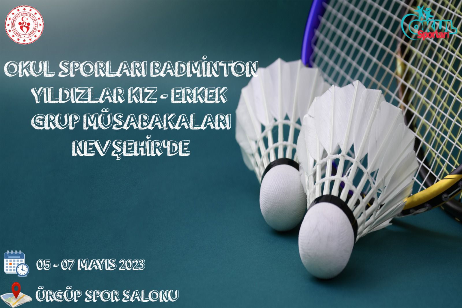 2022-2023 Yılı Okul Sporları Badminton Yıldızlar Kız – Erkek Grup Müsabakaları 05 – 07 Mayıs 2023 tarihleri arasında ilimiz ev sahipliğinde Ürgüp Spor Salonunda düzenlenecek.