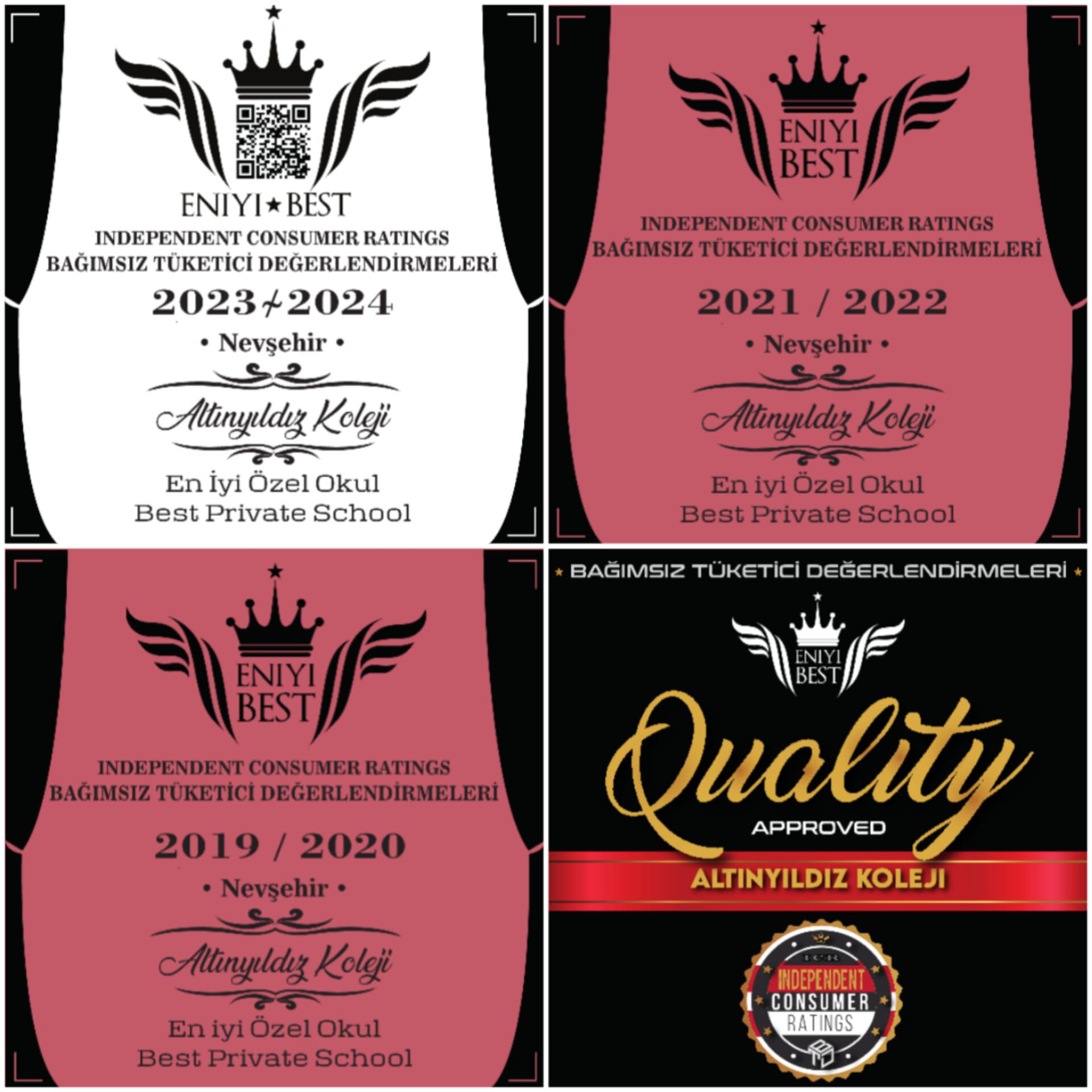 2019-2020, 2020-2021, 2021-2022 Eğitim- Öğretim yıllarında da Best Private School olarak seçilen Altınyıldız Koleji 2023-2024 yılında da Nevşehir’in En İyi Özel Okulu seçilerek 4 yıl boyunca bu ödülü üst üste alma başarısı elde etmiştir.