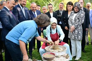 Bakan Göktaş, daha sonra Nar Yapan Eller Kadın İşletme Kooperatifi bünyesinde faaliyet gösteren Hasbıhal Restoran’ı ziyaret ederek işletmeye “Aile Dostu Mekân” tabelasını takdim etti. Burada kadınlarla birlikte gözleme açan ve çömlek yapan Göktaş, kooperatif üyeleriyle de sohbet etti.