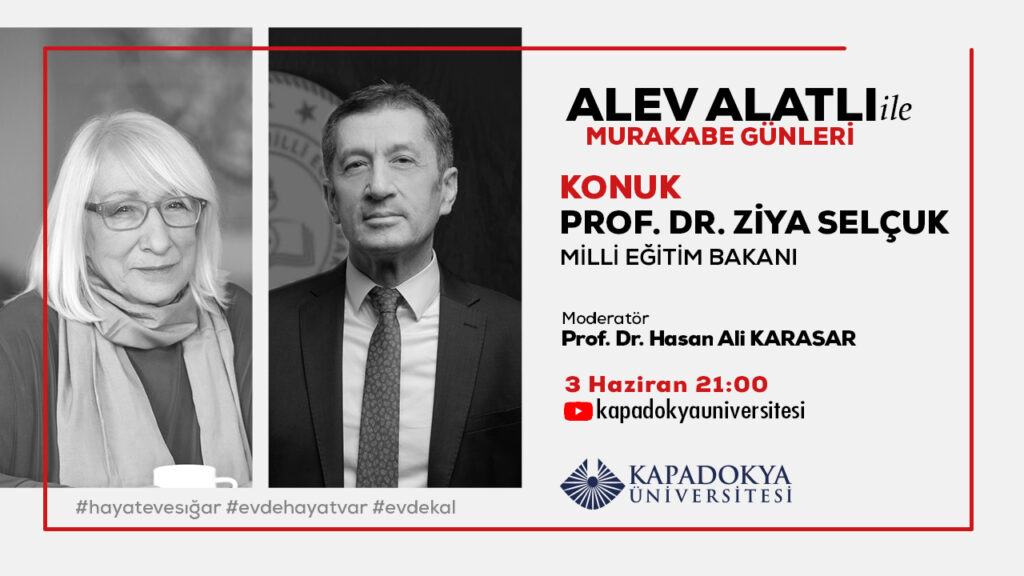 Milli Eğitim Bakanı Prof. Dr. Ziya Selçuk, Kapadokya Üniversitesinin Youtube üzerinden gerçekleştirdiği ve Türkiye’nin önemli isimlerinin konuk olarak ağırlandığı “Alev Alatlı ile Murakabe Günleri” yayınının konuğu oldu.