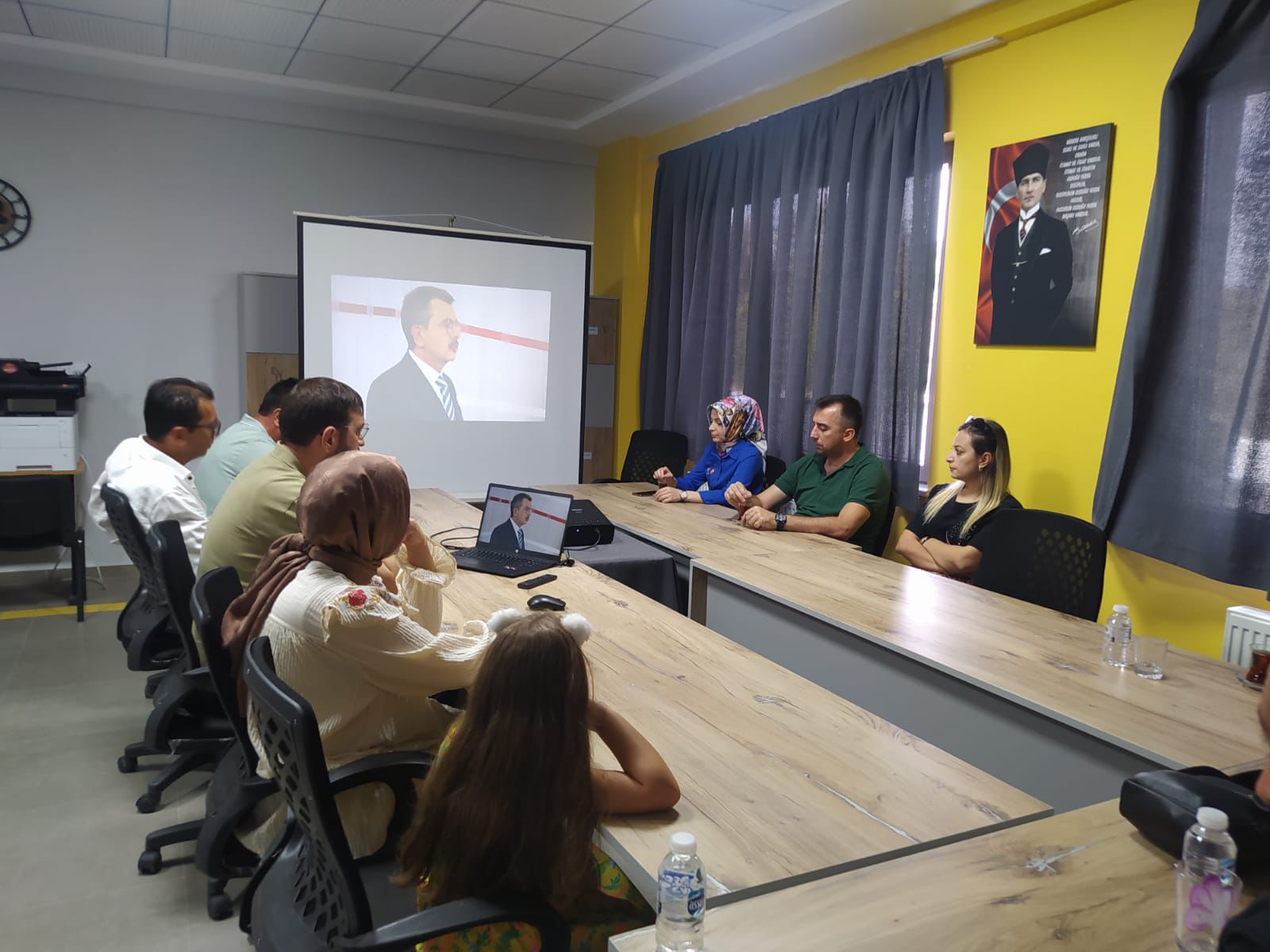Milli Eğitim Bakanlığı Müfettişi İsmail Kirli, İl Milli Eğitim Müdürü Yusuf Yazıcı, Şube Müdürü Gülüzar Ergin ve öğretmenler; Milli Eğitim Bakanı Prof. Dr. Yusuf Tekin’in 2024-2025 Eğitim Öğretim Yılı “Öğretmenlerin Mesleki Çalışma Dönemi” kapsamında Eğitim Bilişim Ağı (EBA) üzerinden gerçekleştirdiği konuşmayı dinlediler.