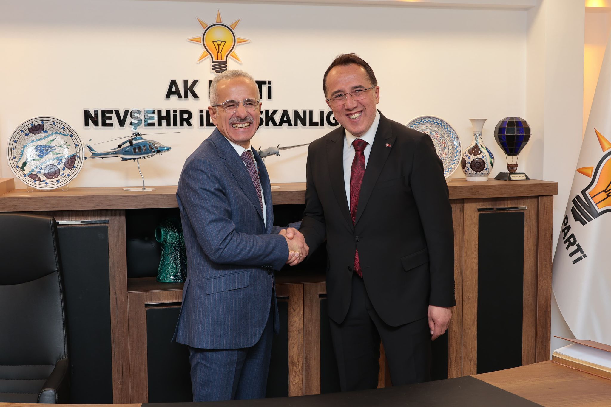 Çeşitli inceleme ve temaslarda bulunmak üzere Nevşehir’e gelen Ulaştırma ve Altyapı Bakanı Uraloğlu, AK Parti Nevşehir İl Başkanlığı’nı ziyaret etti. Burada AK Parti Nevşehir Milletvekilleri Süleyman Özgün ve Emre Çalışkan, AK Parti İl Başkanı Ali Kemikkıran, Nevşehir Belediye Başkanı Dr. Mehmet Savran ile bir süre görüşen Bakan Uraloğlu, daha sonra gazetecilere bakanlığının Nevşehir’deki yatırımları hakkında bilgi vererek sorularını cevaplandırdı.