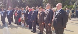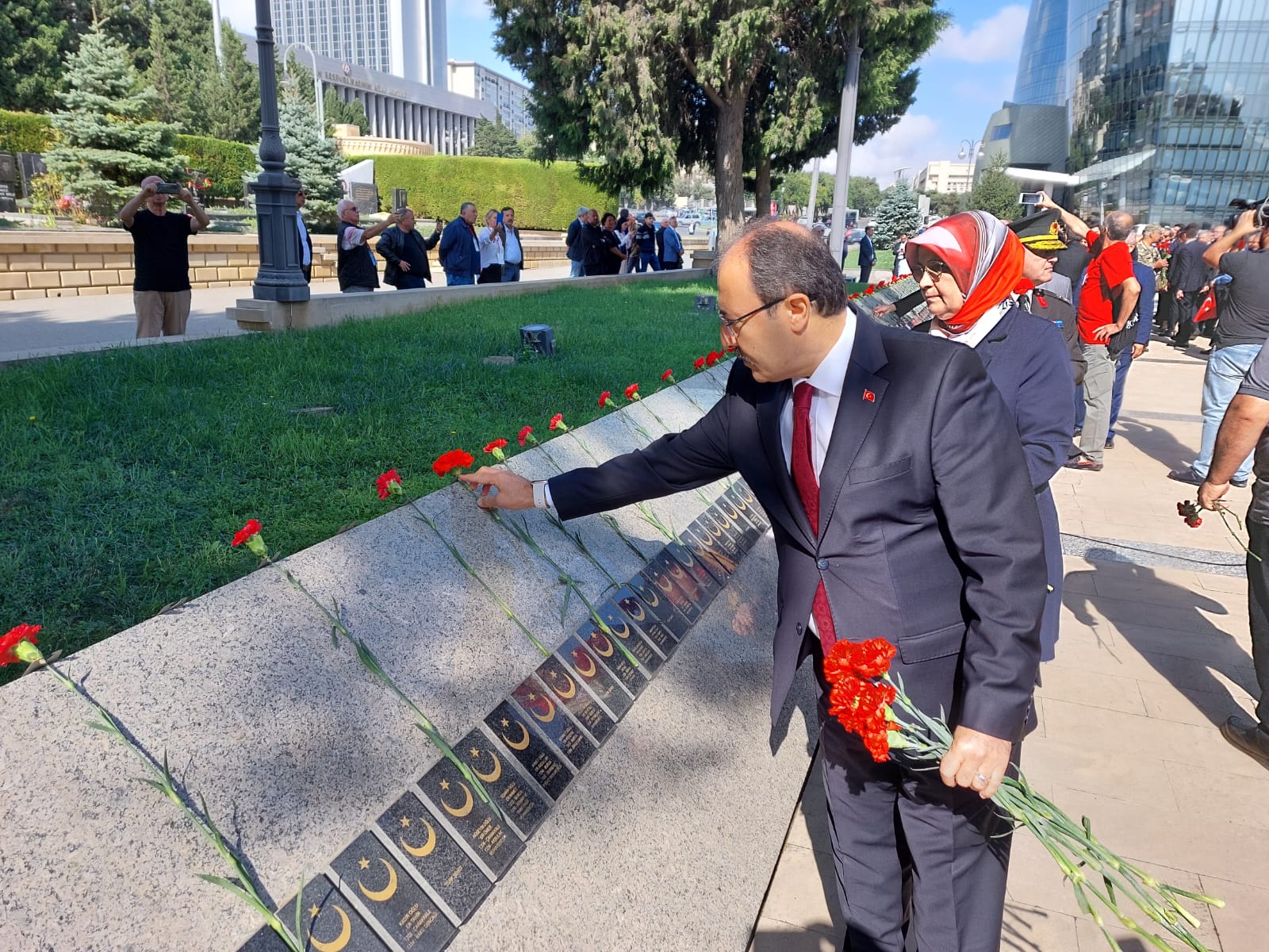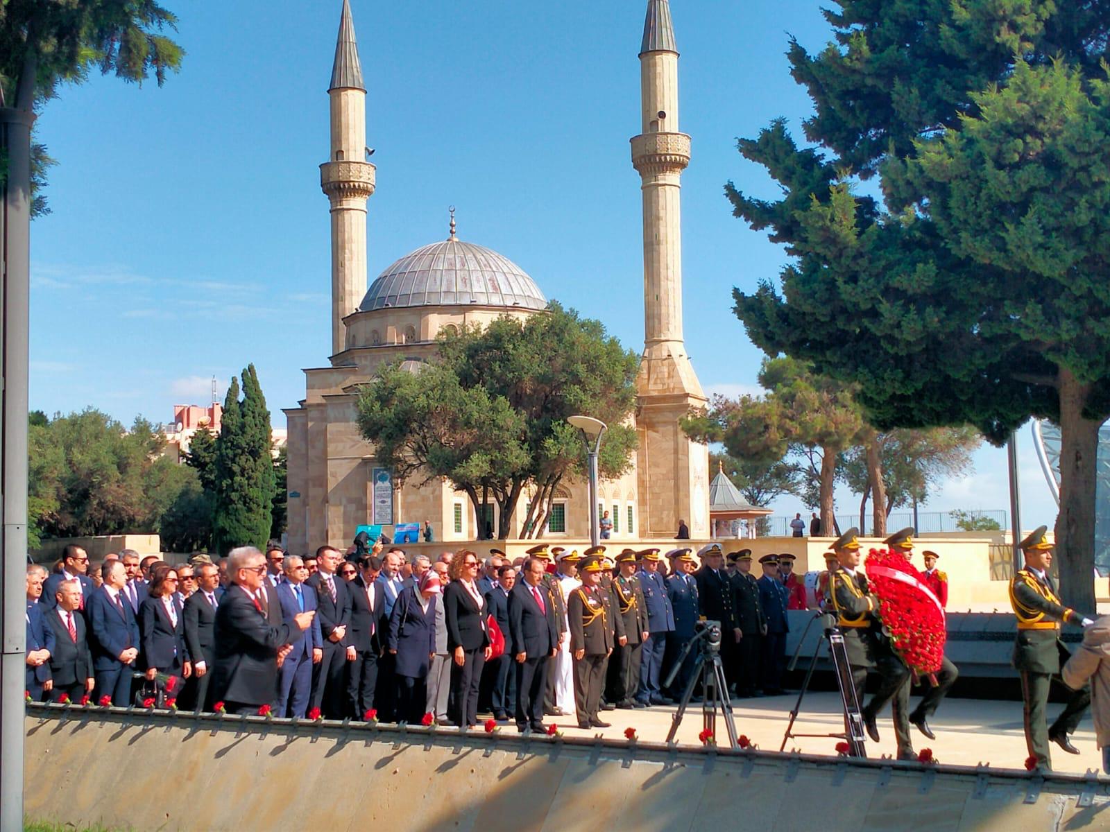 İki ülkenin milli marşları seslendirildi. Yapılan Anıta Türkiye Büyükelçisi çelenk bıraktı ,saygı duruşunda bulundu. Törenlere Türkiye Azerbaycan Büyükelçisi Doç.Dr. Cahit Bağcı ,Azerbaycan ordusu komutanları, Karabağ Savaşı şehit yakınları,gazileri ve Halk katılım sağladı.Şehitlikteki temsili şehit isimlerine bir Türkiye’yi ,digeri Azerbaycan’ı temsilen çift karanfil bırakıldı. Alma törenlerine Türkiye gazetesi haberinasyonu genel başkanı Yılmaz Karaca ve Türkiye’den gelen 50 kişilik ehliyet katılarak Azerbaycan’a olan dostluk ve sevgiyi bir defa daha gösterdiler. TGF Başkanı Yılmaz Karaca temsili şehit isimlerine Karanfil bıraktı. Azerbaycan’ın TV kanallarına günün anlamına yönelik röportaj verdi.