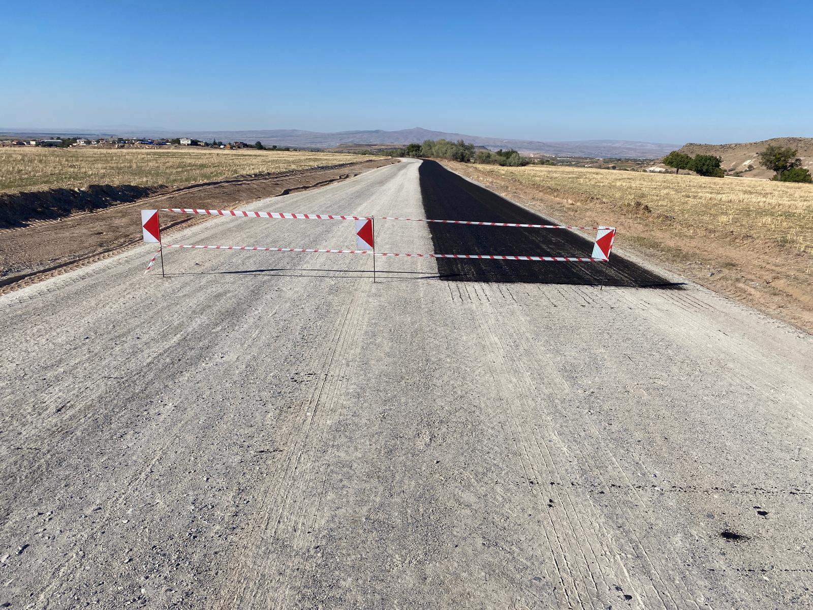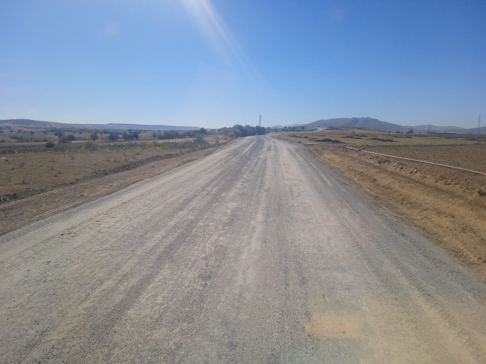 Yolun uzun ömürlü ve dayanıklı olması için daha önce yarma ve dolgu işleri yapılan yolda son olarak temel malzeme serimi yapılmış ve sıkıştırılmıştı.