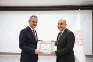Nevşehir İl Milli Eğitim Müdürü Memet Polat katıldığı iftar programında başarı belgesini Bakanın elinden aldı.