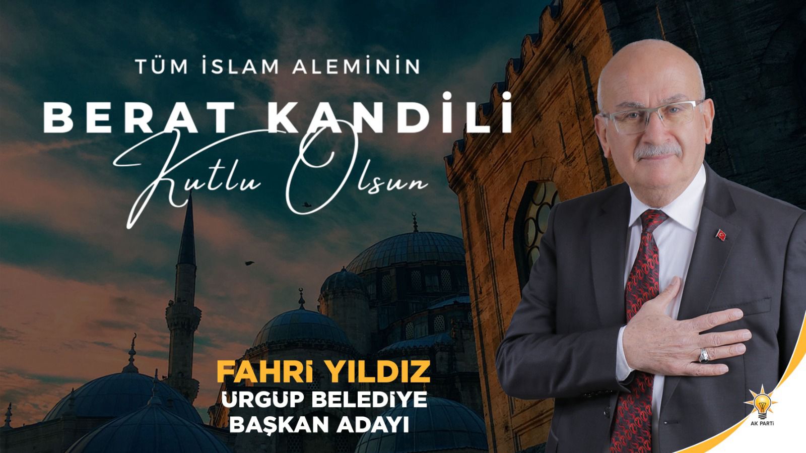 AK Parti Ürgüp Belediye Başkan Adayı Fahri Yıldız, Berat Kandili dolayısıyla mesaj yayımladı.