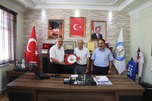 Başkanlık makamında gerçekleşen ziyarette Kuyder Başkanı Hayri Göktaş ve kuyuder Mahmut Yılmaz Derinkuyu Belediye Başkanı Bülent Aksoy’u ziyaret ettiler.