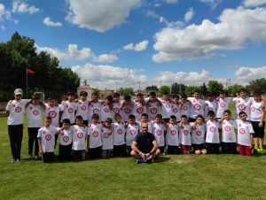 Derinkuyu Belediye Başkanı Bülent Aksoy, belediyenin girişimleriyle açılan yaz spor okuluna katılan sporcu gençlere tam destek.