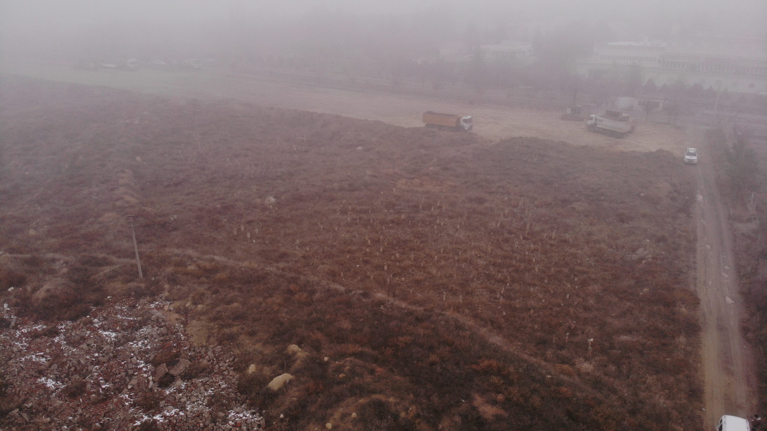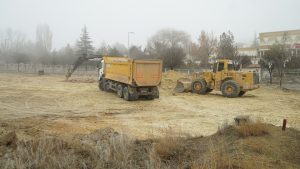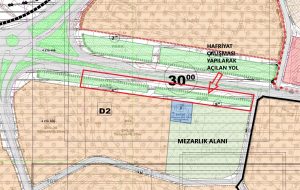 Ürgüp’ün eski mezarlık alanlarından olan Taflı mezarlığı olarak bilinen ve mülkiyeti milli emlak şefliğine ait olan 13.053 m² ‘lik  parselin sınırında olan, imar planında yol ve park olarak belirlenen noktada Ürgüp Belediyesi tarafından hafriyat çalışması yapılıyor.