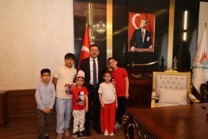 Mehmet Emin Dursun, Yusuf Sami Sarıtosun, İbrahim Yahşi, Yağız Efe Deveci ve Hilal Özcan, Çocuk Bayramı dolayısıyla başkanlık koltuğuna oturarak istek ve taleplerini Nevşehir Belediye Başkanı Rasim Arı’ya iletti. Yeni başkanların Nevşehir ve kent yönetimine dair hayallerini ve taleplerini sorarak onlarla keyifli bir sohbet yapan Başkan Arı, daha sonra çeşitli hediyeler verip öğrencilerle birlikte fotoğraf çektirdi.