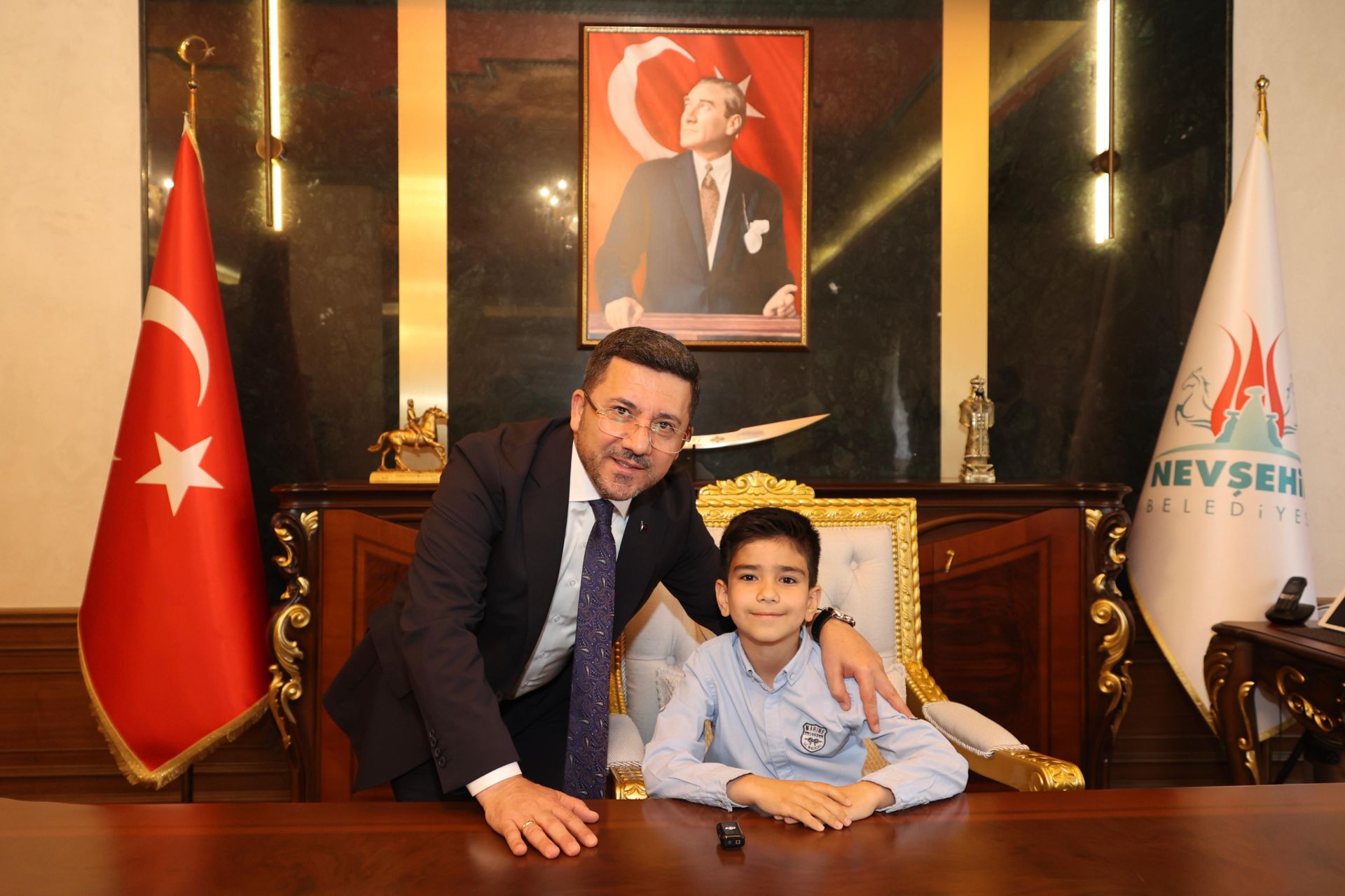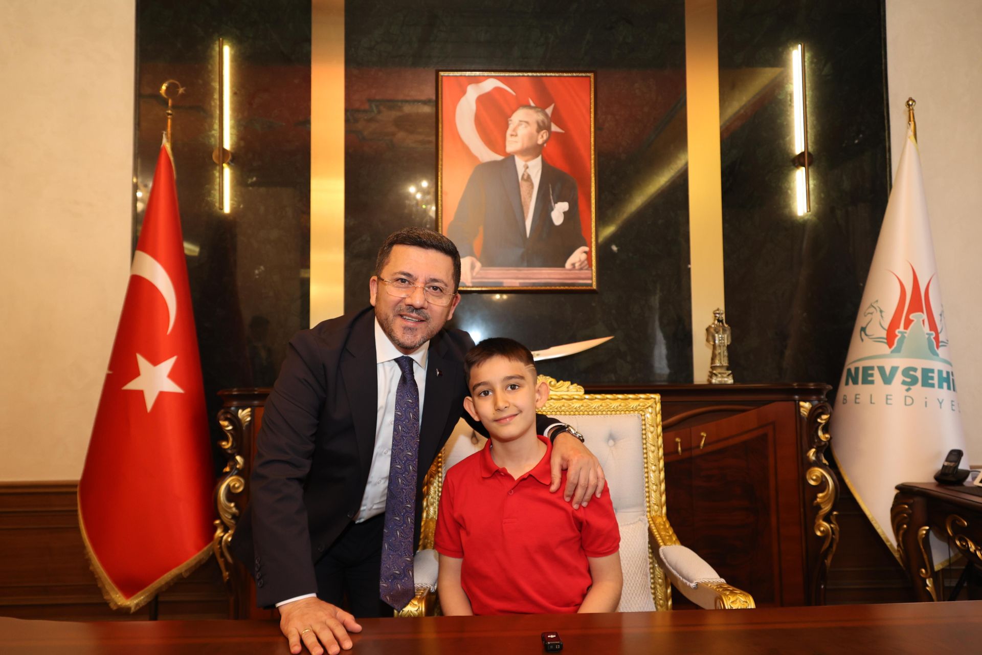 23 Nisan Çocuk Bayramı dolayısıyla Başkanlık Makam koltuğuna oturan Altınyıldız Koleji 6. Sınıf öğrencisi Gazi Muharrem Dursun’un Oğlu Mehmet Emin Dursun “15 Temmuz Mahallesi civarına Halı saha yapılmasını istiyorum. Ayrıca 18 Mart Çanakkale Şehitlerini anma gününde Nevşehirli çocukların Çanakkale’yi ziyaret etmeleri sağlanarak ecdadımızın nasıl bir başarı yakaladığını görsünler, gezsinler dolaşsınlar” diye konuştu.
