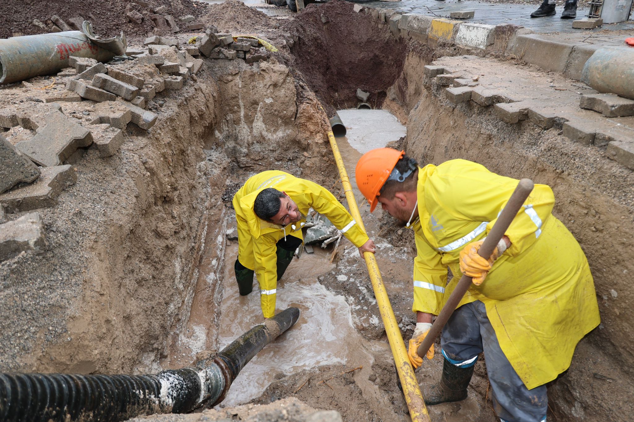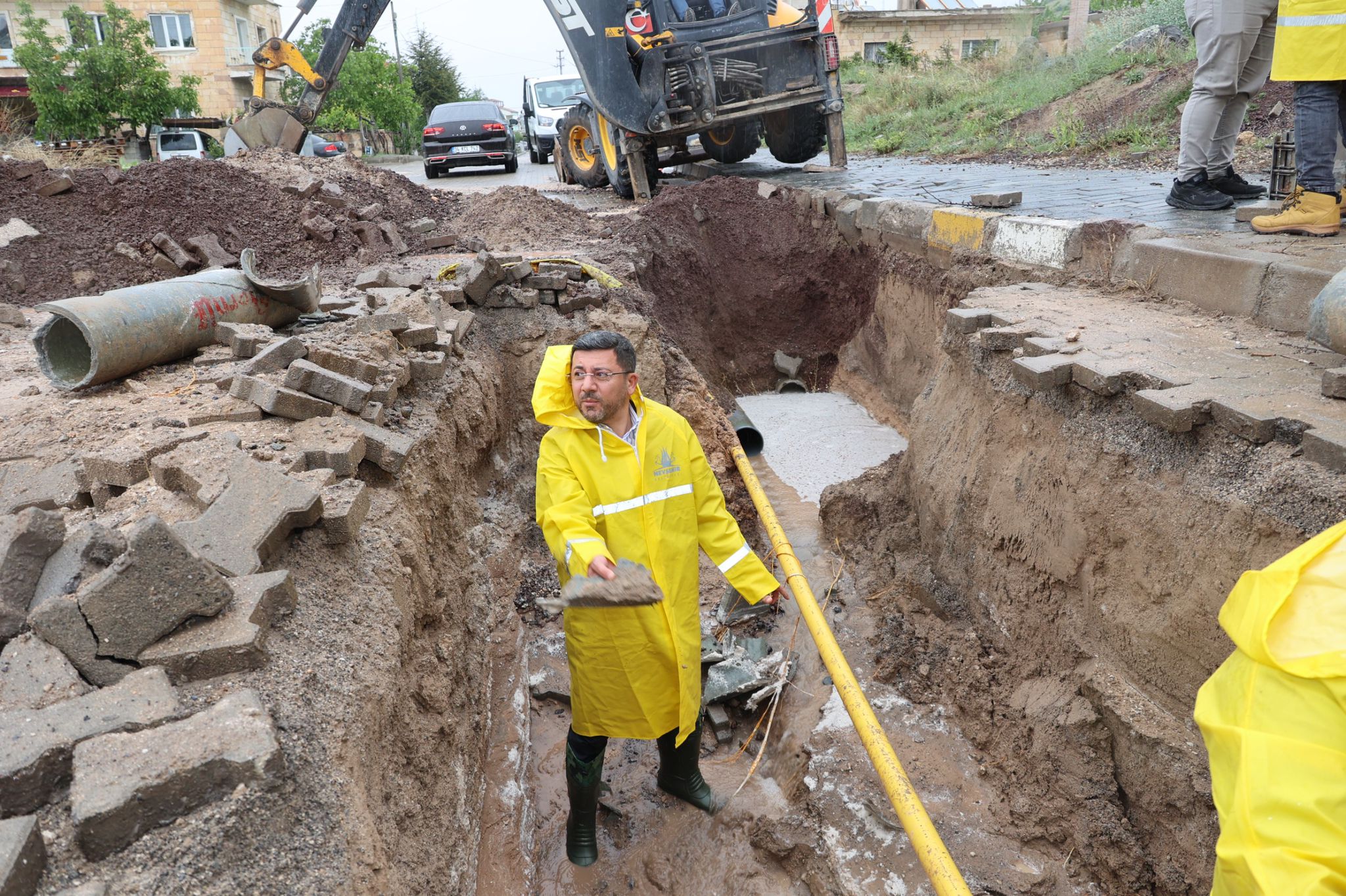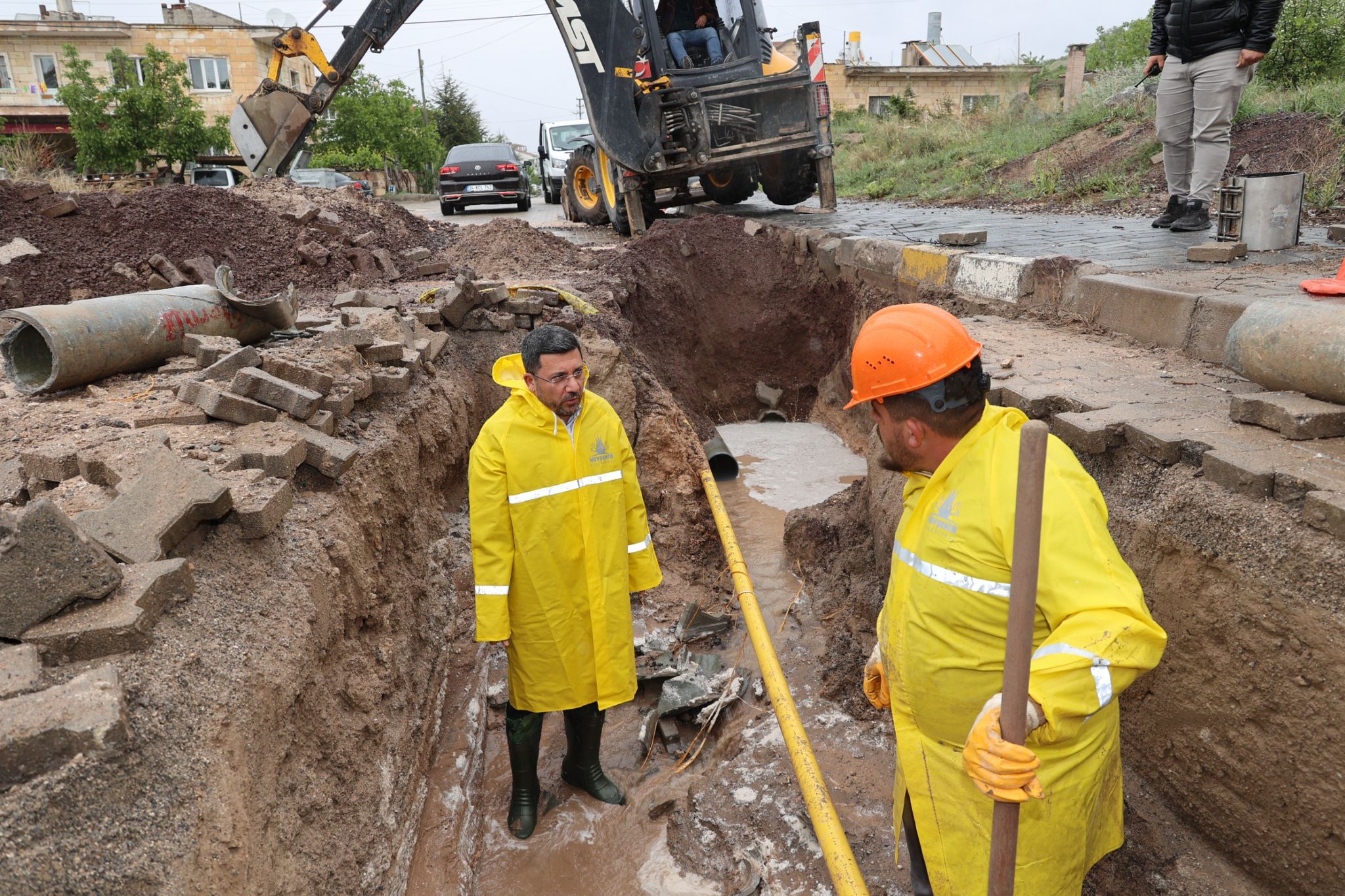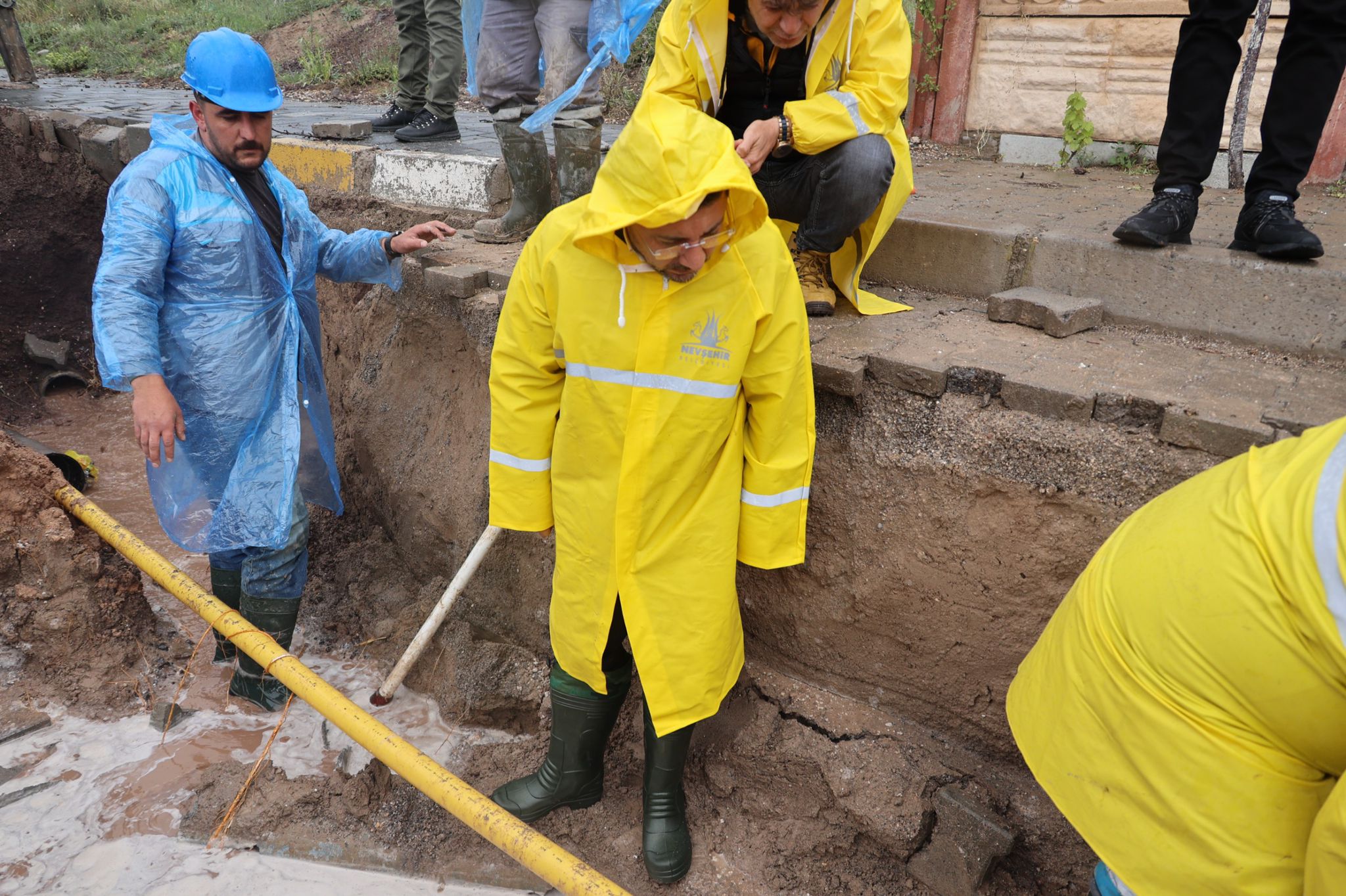 Nevşehir Belediye Başkanı Rasim Arı, Mehmet Akif Ersoy Mahallesi’nde meydana gelen su arızasına müdahale eden belediye ekiplerinin çalışma alanında incelemelerde bulundu.