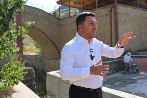 Mostar Köprüsü’nün olduğu noktada en önemli projelerimizden bir tanesini daha hayata geçireceğiz. Madem burasını turizm adası ilan ettik, turizmi canlandırıyoruz, hem atıl vaziyetten kurtaracağız hem de on binlerce turistin on binlerce insanın buraya gelmesini sağlayacak sadece Nevşehir’den değil sadece turistler değil beraberinde civar illerden gelecekleri, rezervasyon yaparak akın akın misafir kabul edeceğimiz bir alan haline dönüştürüyoruz.