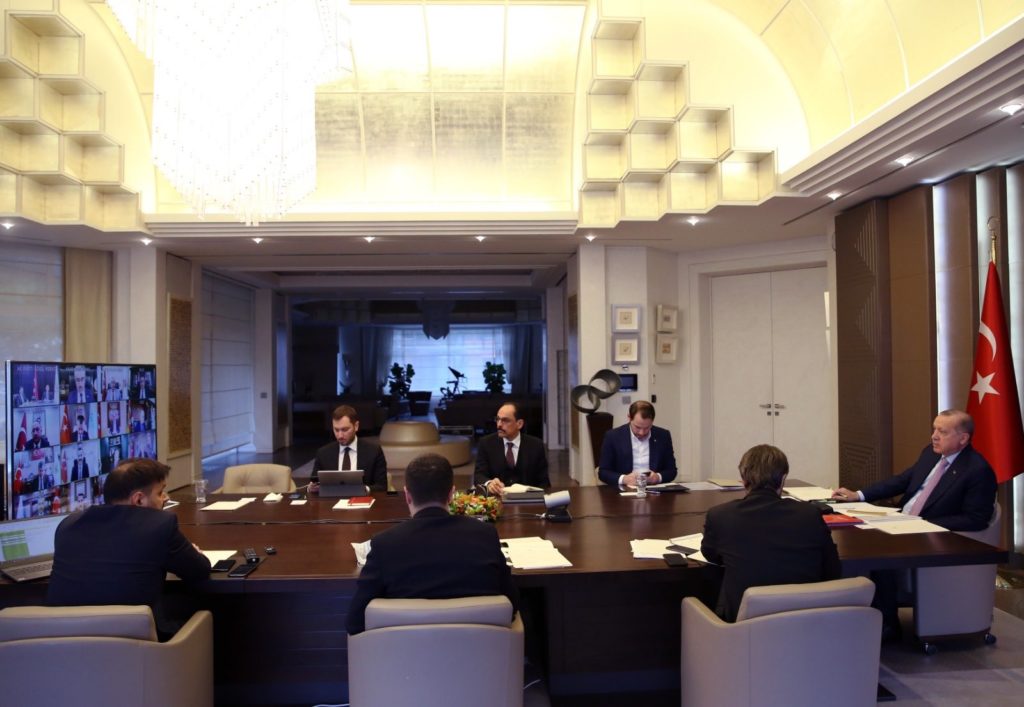 Ak parti genel başkanı ve Cumhurbaşkanı Recep Tayyip Erdoğan, video konferans yöntemiyle belediye başkanları ile toplantı yaptı.