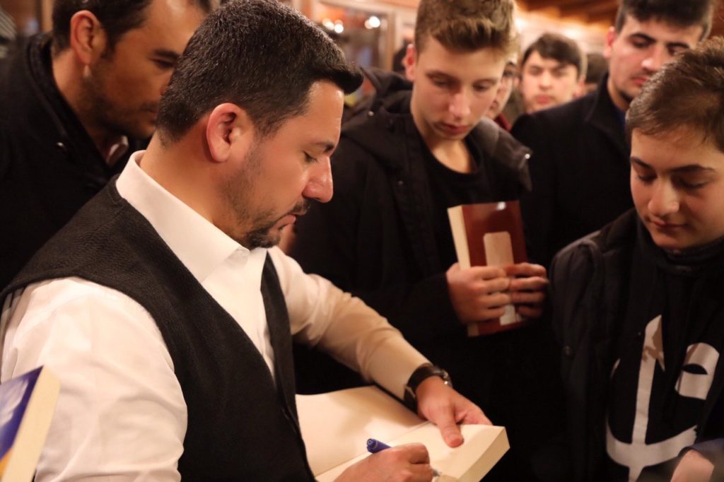 Belediye Başkan Yardımcıları Ersan Erkut ve Mustafa Alevli’nin de bulunduğu buluşmada Türkiye’nin çeşitli illerinden gittikleri İstanbul’da eğitimlerini sürdüren gençlerle hatıra fotoğrafı çektiren Arı, misafirlerine kitap hediye etti.