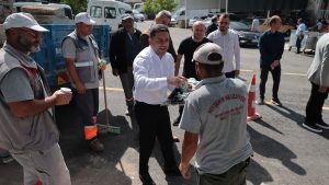 Belediye Başkanı Rasim Arı, belediye ekipleri tarafından hafta sonu Yeni Sanayi Sitesi ve Lale Sanayi Sitesi’nde gerçekleştirilen temizlik çalışmalarını inceledi. Çalışmalar hakkında Belediye Başkan Yardımcıları Veli Kırşehirli ve Hasan İler’den bilgiler alan Arı, çalışmalarda görev alan belediye personellerine kolaylıklar diledi.