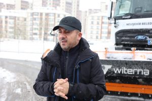 Nevşehir’de dün akşam saatlerinde başlayan karla karışık yağmur gece saatlerinden itibaren yerini yoğun kar yağışına bıraktı. Nevşehir Belediyesi ekiplerinin şehir merkezinde başlattığı karla mücadele çalışmaları aralıksız devam ederken Belediye Başkanı Rasim Arı, Nevşehir Belediyesi araç filosuna yeni katılan Kar Küreme Aracı’nın şoför koltuğuna geçerek şehrin periyodik noktalarında kar temizliği yaptı.