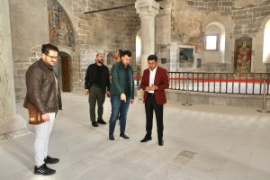 Belediye Başkanı Rasim Arı, Nevşehir Kalesi çevresinde bulunan ve kendi döneminde turizme kazandırılan Kayaşehir ve yine kendi döneminde Kültür ve Turizm Bakanlığı ile yapılan protokol çerçevesinde restorasyon çalışması gerçekleştirilen Meryem Ana Kilisesi’nde incelemelerde bulundu.