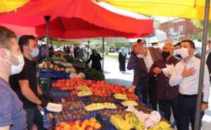 Pazar esnafları ile sohbet ederek hayırlı ve bol kazançlar dileyen Başkan Arı, hem esnaflardan hem de vatandaşlardan maske, hijyen ve sosyal mesafe kurallarına dikkat etmelerini istedi.