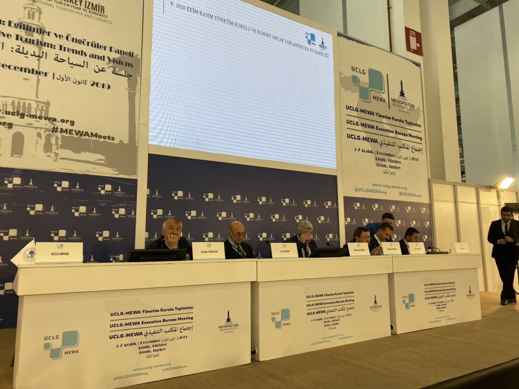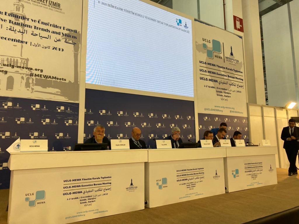 Dünyanın en büyük yerel yönetim birliği olan Birleşmiş Kentler ve Yerel Yönetimler Orta Doğu ve Batı Asya Bölge Teşkilatı (UCLG-MEWA)’da Sayman Yönetim Kurulu Üyesi görevinin yanında Denetleme Kurulu Başkanlığı ve Kültür ve Turizm Komitesi Eşit Başkanlığı görevlerini yürüten Nevşehir Belediye Başkanı Rasim Arı, teşkilatın İzmir’de gerçekleştirilen Yönetim Kurulu ve Kültür ve Turizm Komitesi Toplantısına katıldı.