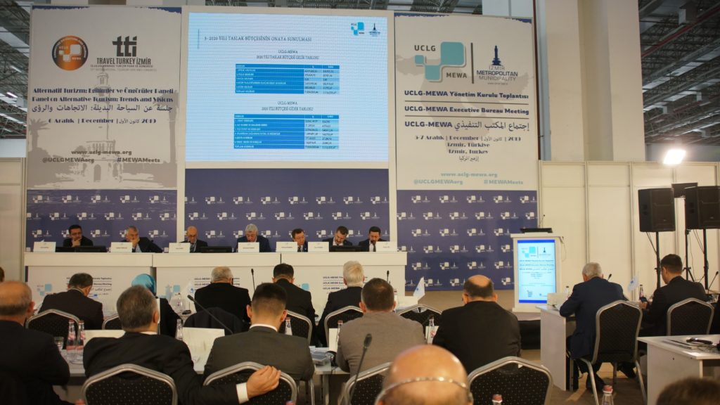 UCLG-MEWA Yönetiminde Sayman olarak görev yapan Başkan Arı, burada bir sunum gerçekleştirerek teşkilatın 2020 yılı taslak bütçesini sundu.