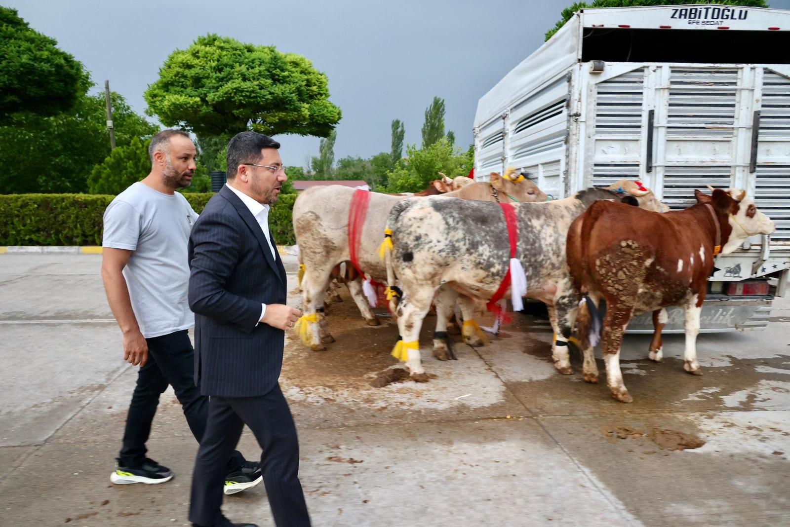 Hayırsever vatandaşların desteği ile alınan kurbanlıklar bayramın ikinci günü kesilerek belediye görevlilerince ihtiyaç sahibi ailelere dağıtılacak.