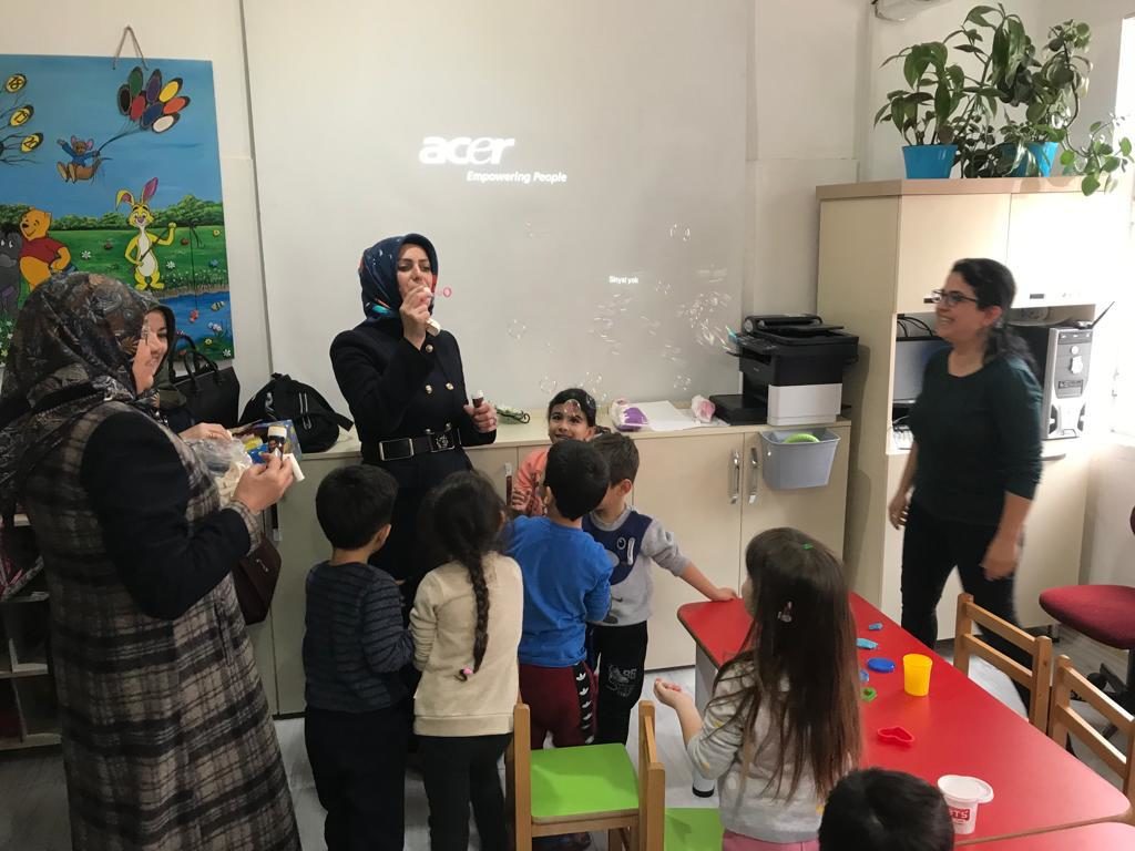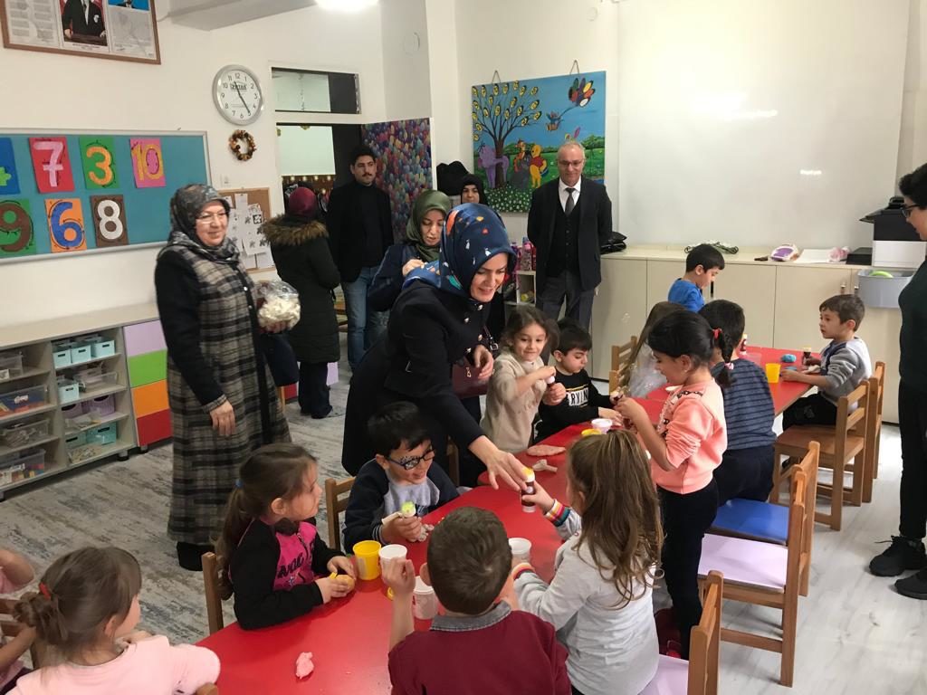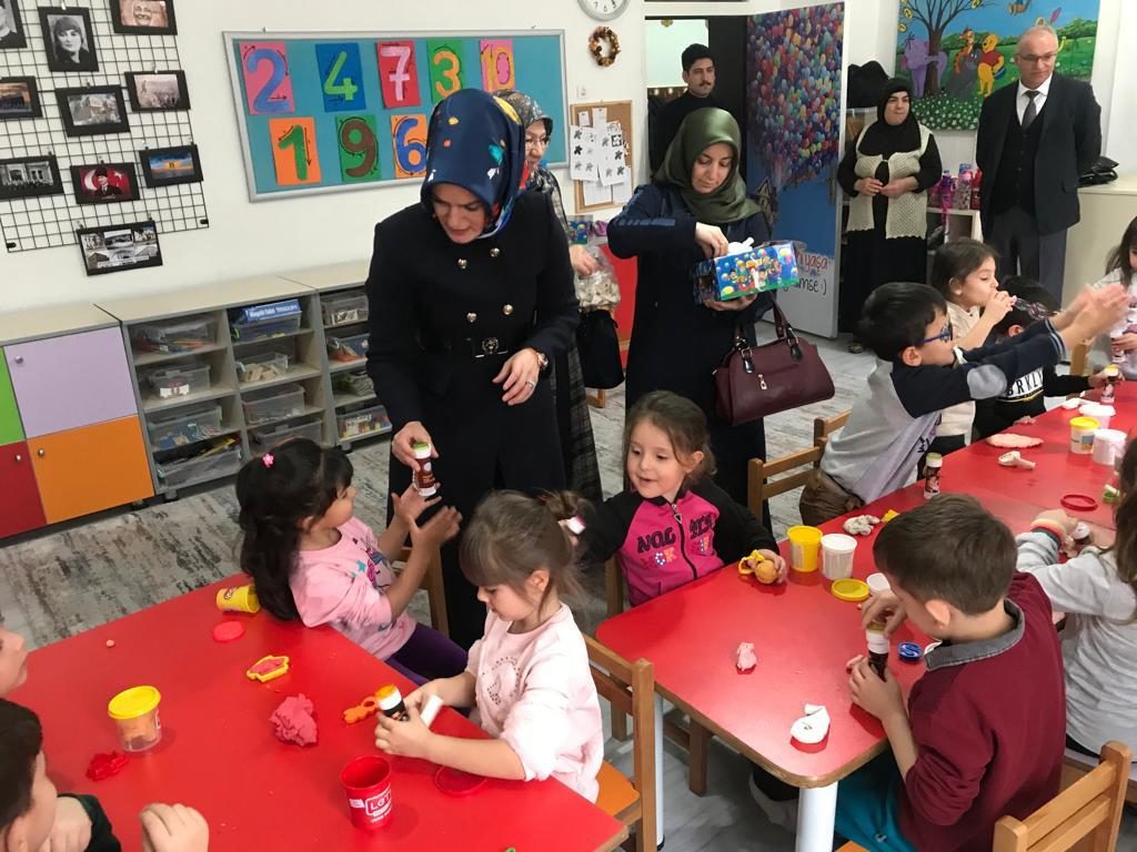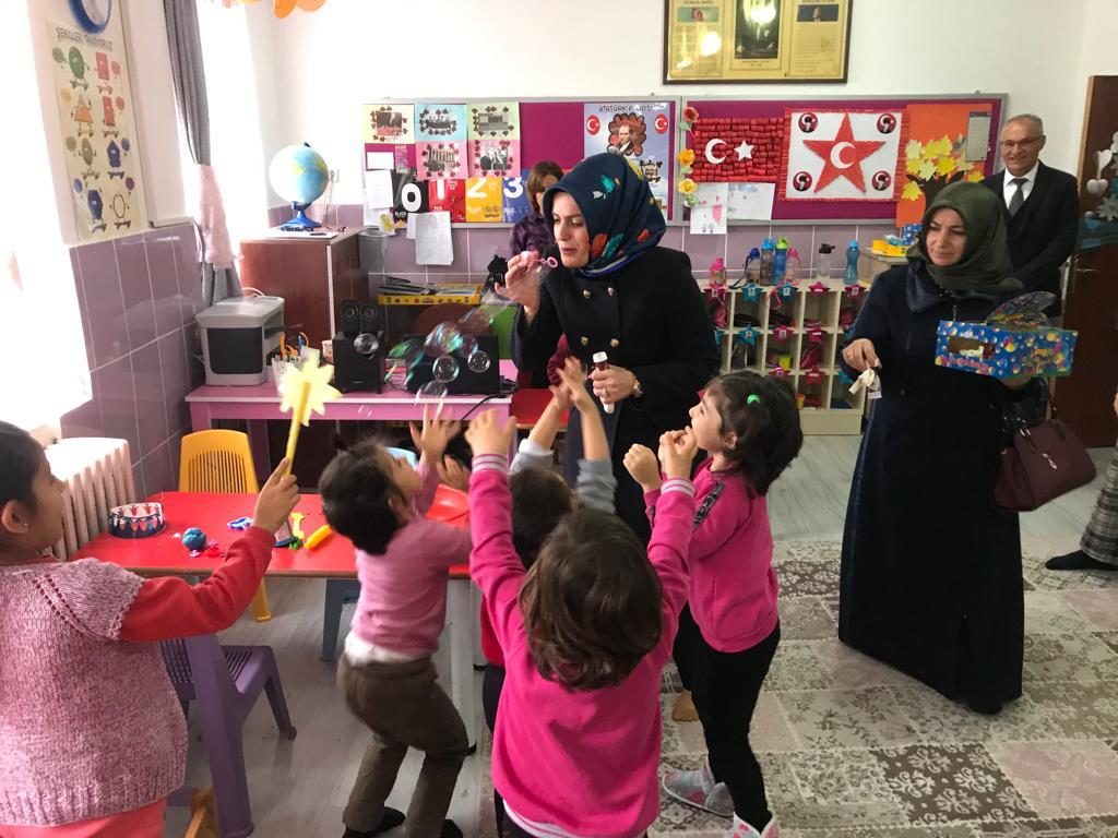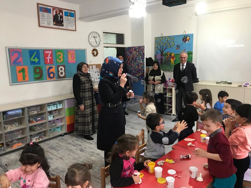 Burada okul idarecileri ile bir süre görüştükten sonra ana sınıfı ve İlkokul şubelerini gezen Melek Arı, öğrencilerle bir süre vakit geçirdi.