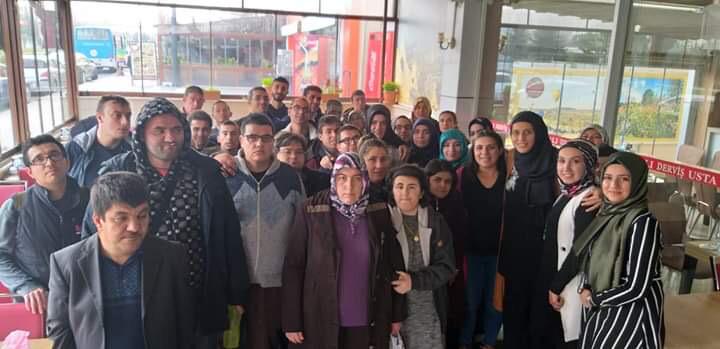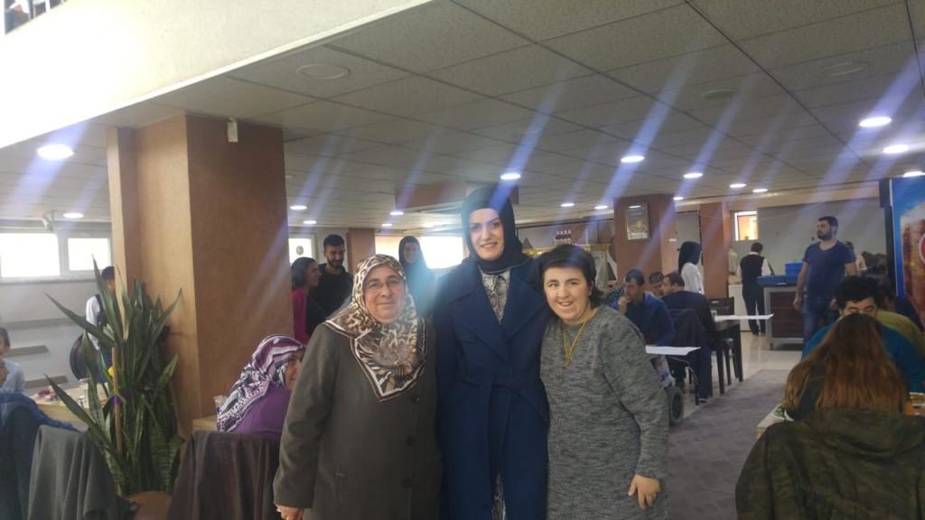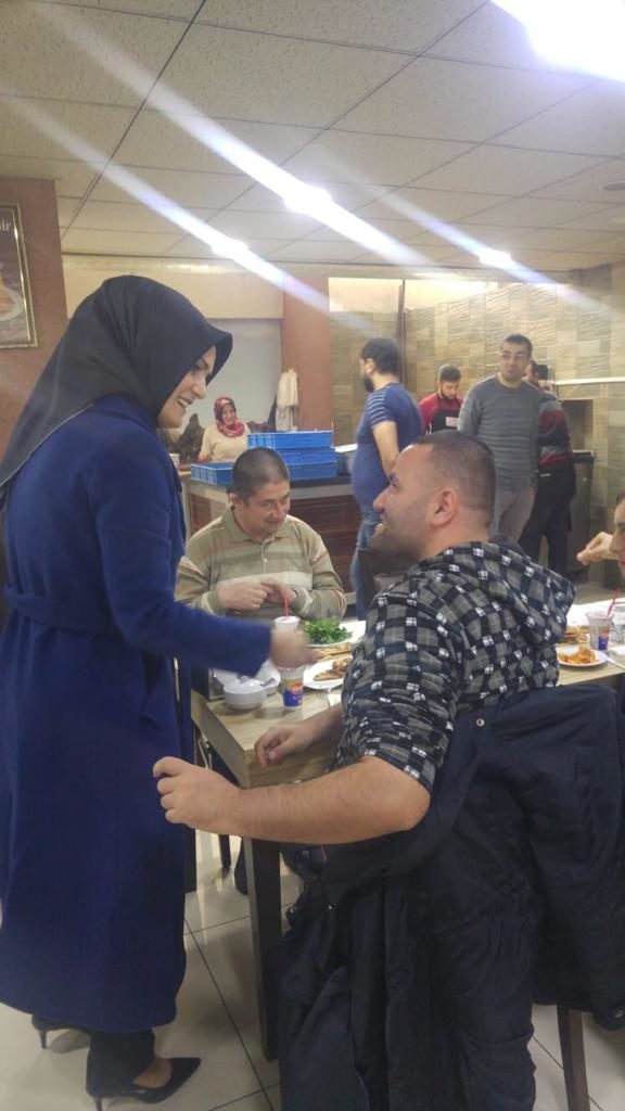 Özel bir restoranda gerçekleşen yemek programında merkez yöneticileri ve öğretmenlerden merkezde yürütülen çalışmalara ilişkin bilgiler alan Melek Arı, merkezde öğrenim gören özel insanlarla sohbet etti.