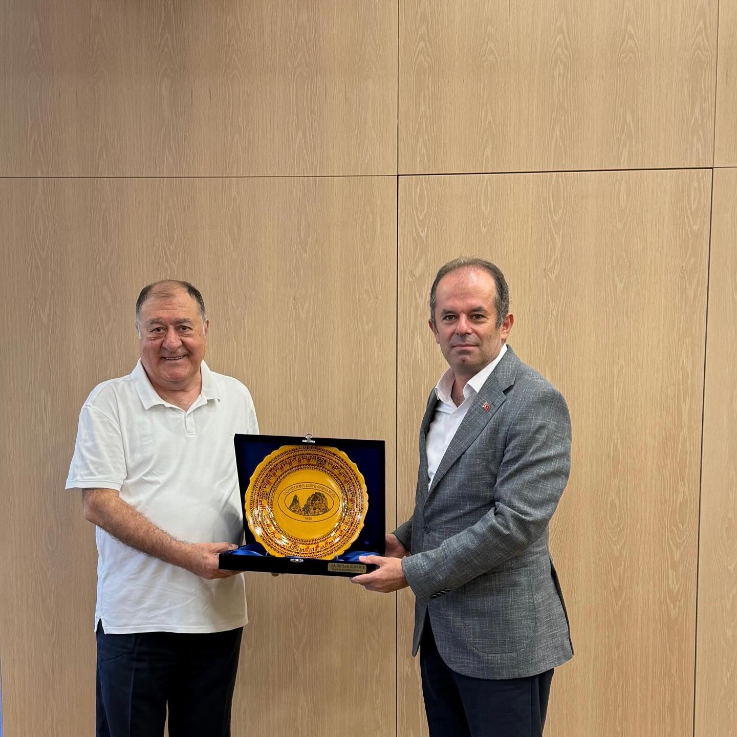 Uçhisar Belediye Başkanı Abdullah Çamcı, Nevşehir Ticaret ve Sanayi Odası (NTSO) Yönetim Kurulu Başkanı Arif Parmaksız’ı makamında ziyaret etti.