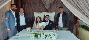 Türk Sağlık-Sen Nevşehir Şube Başkanı Turgay Çetin, Şube Başkan Yardımcısı Denizhan Aksoy ve Kozaklı ilçe temsilcisi Alparslan Bilen ile Kozaklı Fizik Tedavi ve Rehabilitasyon Hastanesi işyeri temsilcisi Enes Pekel ve sendika üyesi Esra Acer’in Kırşehir, Kaman’daki düğün merasimlerine katılarak, genç çifte mutluluklar diledi.