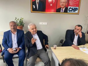 CHP Derinkuyu İlçe başkanı ve beraberindeki partililerin bayramlarını kutlayan CHP İl Başkanı Kamil Gülmez, partililerle gündeme ilişkin karşılıklı görüş alışverişinde de bulundu.