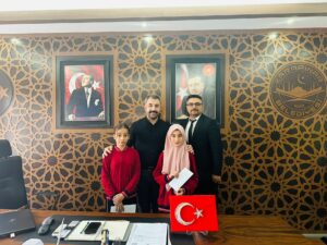 Acıgöl İlçesine bağlı Karacaören Köyü Cumhuriyet Ortaokulu öğrencileri, kazandıkları derecelerle dikkat çekerken, Karapınar Belediye Başkanı Yasin Güneş’i Okul Müdürü Enes Güleş ve Öğretmenleri ile birklikte ziyaret ettiller. Nevşehir’de Su Verimliliği konulu kompozisyon yarışmasında il birincisi olan Fatma Zehra Kaş ile Çanakkale temalı şiir yarışmasında il ikinciliği elde eden Neslihan Eren, öğretmenleriyle birlikte Başkan Güneş’in makamında ağırlandı. Başarılı öğrencilerle yakından ilgilenen Belediye Başkanı Yasin Güneş, elde ettikleri derecelerden dolayı öğrencileri tebrik ederek, eğitim hayatlarında başarılarının devamını diledi. Ziyaret sırasında öğrencilere çeşitli hediyeler takdim eden Başkan Güneş, gençlerin azim ve gayretlerinin örnek teşkil ettiğini vurguladı. Başkan Güneş yaptığı açıklamada, “Eğitimde elde edilen her başarı bizleri gururlandırıyor. Öğrencilerimizin bu tür yarışmalarda derece elde etmesi hem aileleri hem de beldemiz adına büyük bir mutluluk.Geleceğimiz olan çocuklarımızı her zaman desteklemeye devam edeceğiz” ifadelerini kullandı. Karacaören Cumhuriyet Ortaokulu Müdürü Enes Güleş ve öğretmenleri de desteklerinden dolayı Başkan Güneş’e teşekkür etti.