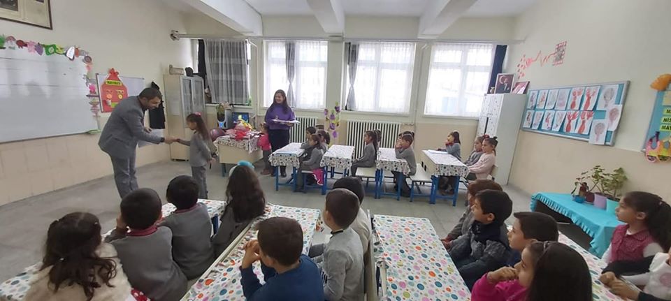 Karapınar İlkokulunda düzenlenen karne programına katılan, öğrencilere çiçek takdim eden Başkan Güneş, 2019 – 2020 eğitim öğretim yılının ilk yarısının sonunda gerçekleştirilen karne töreninde öğrencilere eğitim hayatlarında başarılar diledi.