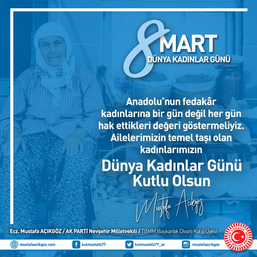 Kadınlarımızın daha güvenli, özgür, eşit bir dünyada yaşaması için çalışmaya ve kadınlarımızla birlikte üretip, birlikte yönetmeye devam edeceğiz. Bu duygu ve düşüncelerle hayatımıza değer katan tüm emektar ve fedakar kadınlarımızın 8 Mart Dünya Emekçi Kadınlar Günü’nü kutlar, huzur, barış, mutluluk dolu, sağlıklı güzel günler dilerim” dedi.