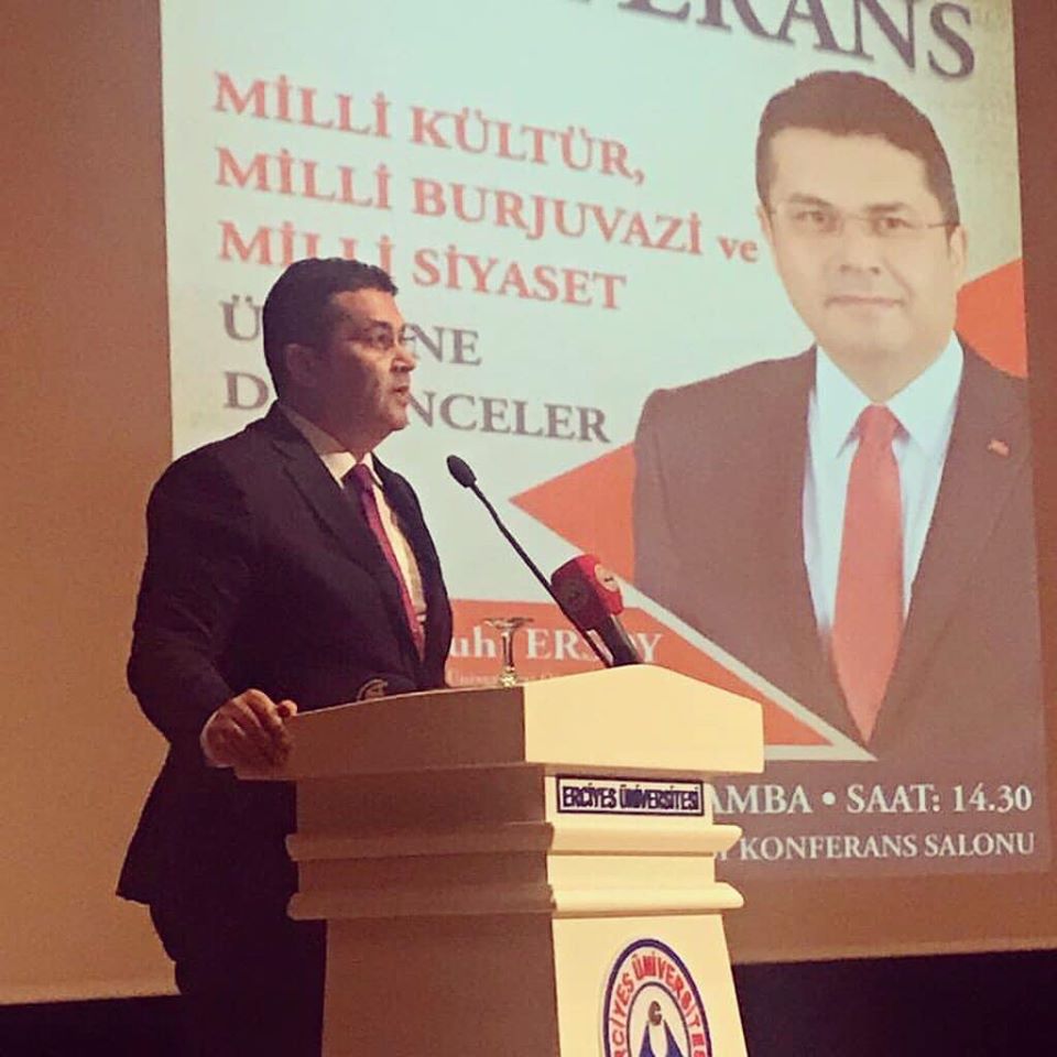 Başkan Kaya, “Erciyes Üniversitesinde düzenlenen, Milli Kültür Milli Burjuvazi ve Milli Siyaset üzerine düşünceler temalı konferansta Prof. Dr. Ruhi Ersoy hocamızı dinlemekten kıvanç duyduk” paylaşımında bulundu.