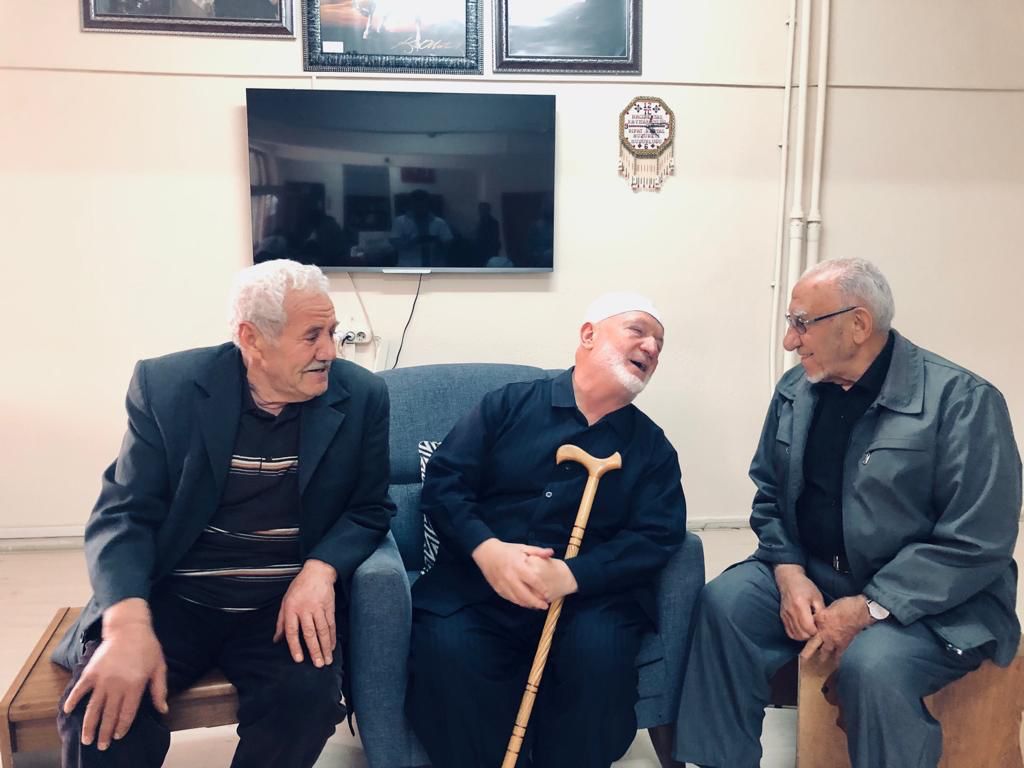 Ziyaret kapsamında hem yaşlılar ile sohbet eden Dernek Başkanı Erol Mutlu ve Başkan Yardımcısı Mahmut Sami Kemikkıran. Kurum müdürü Yusuf Salman‘a hayırlı olsun dileklerini ilettiler.