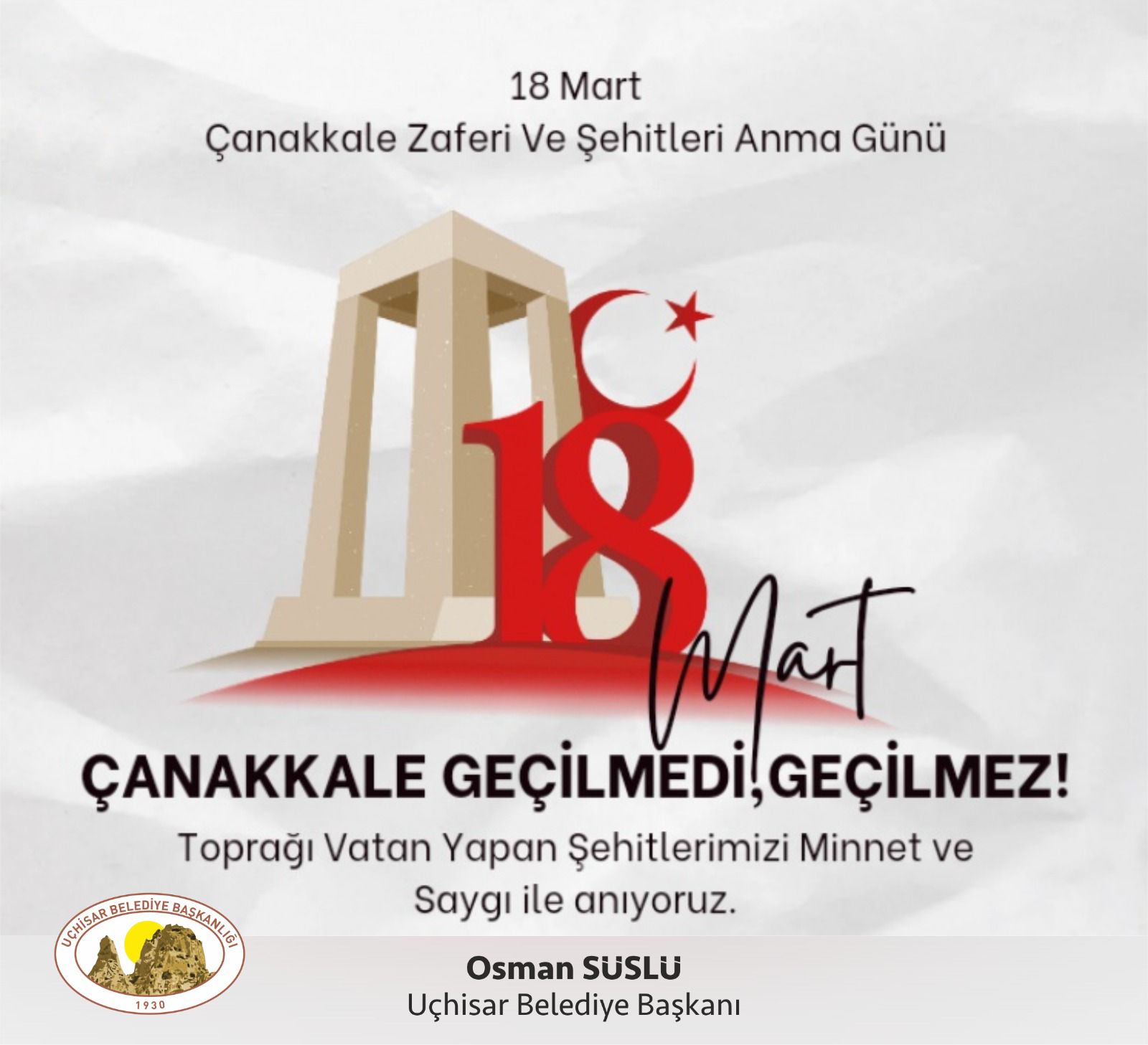 Uçhisar Belediye Başkanı Osman Süslü, 18 Mart Çanakkale Zaferi ile ilgili mesaj yayınlayarak şehitlerimizi andı.