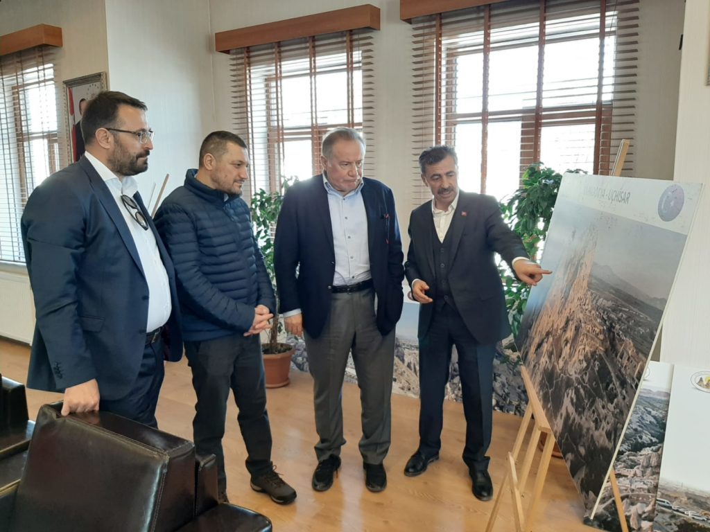 Ziyaretin gündem konusu olan Uçhisar Kalesi ve restorasyon projesi hakkında bilgi veren Başkan Osman Süslü proje çalışmalarının devam ettiğini kısa sürede tamamlanacağını belirtti.
