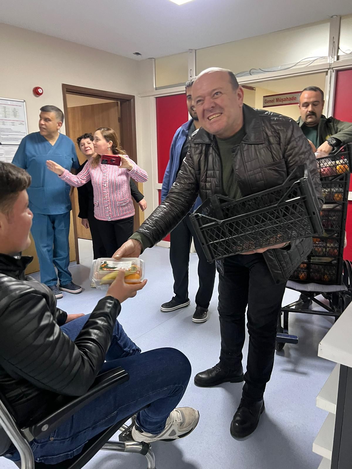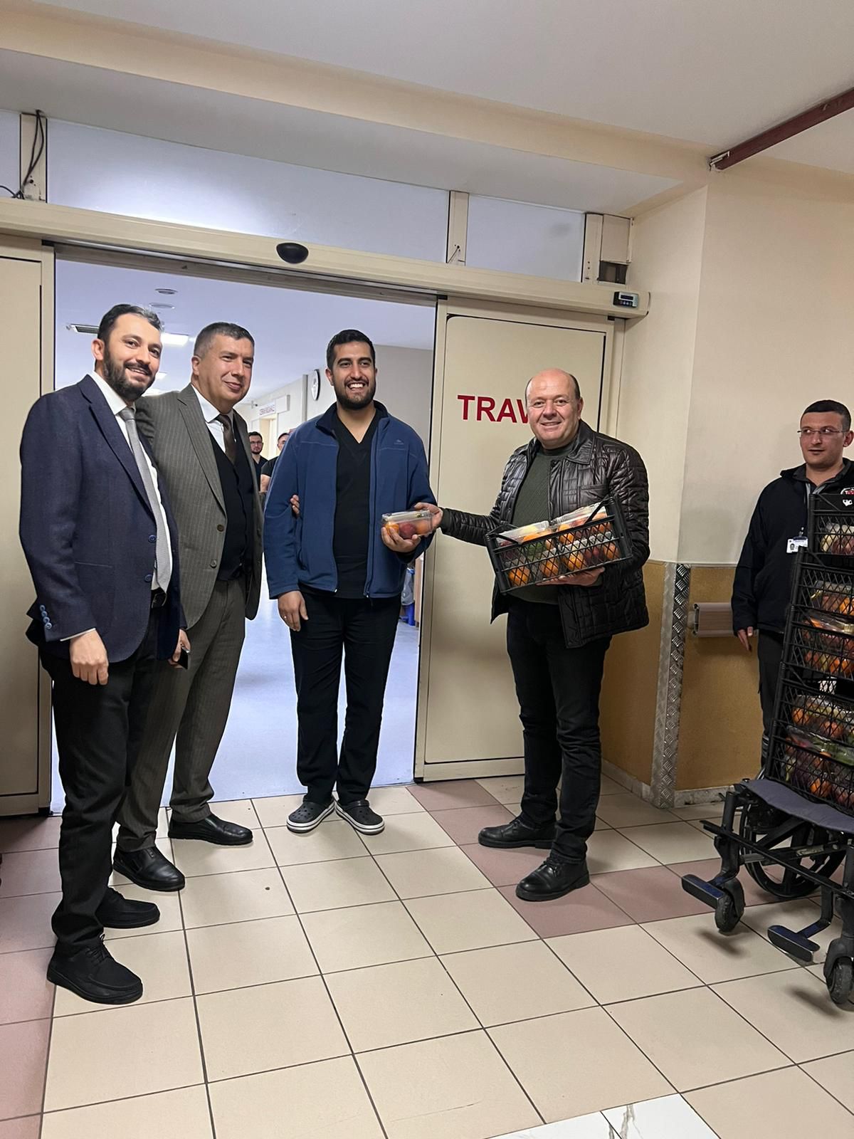 Ziyaretinde çalışanlara meyve ikramında da bulunan Oda Başkanı Özmen, “Polis, 112, jandarma, hastane, itfaiye, zabıta temizlik personeli. 5. Yıldır geleneksel olarak pazar esnafımızın selamlarını iletiyoruz. Memleketimize hizmet eden bizim için çok kıymetlidir” dedi.