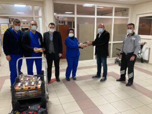 NEVŞEHİR(MHA) Nevşehir Pazarcılar Odası Başkanı Selim Özmen, 2021 yılının ilk gecesinde nöbetçi kamu çalışanlarına meyve ve kuru yemiş ikramında bulundu.