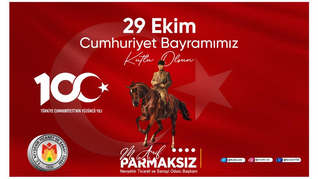 Nevşehir Ticaret ve Sanayi Odası Yönetim Kurulu Başkanı M. Arif Parmaksız, 29 Ekim Cumhuriyet Bayramı dolayısıyla bir kutlama mesajı yayımladı.