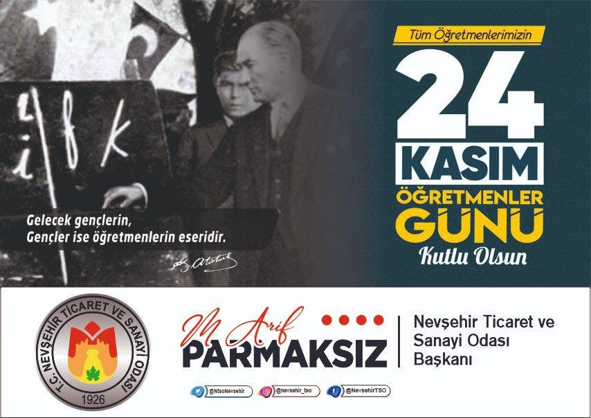Nevşehir Ticaret ve Sanayi Odası Yönetim Kurulu Başkanı M. Arif Parmaksız, 24 Kasım Öğretmenler Günü dolayısıyla mesaj yayımladı.